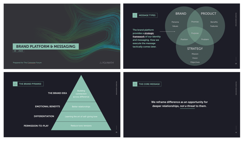 Sample slides: Brand strategy, The Colossian Forum (2023)