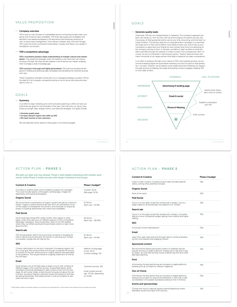 Sample pages: Marketing strategy, YER Executive Recruitment (2019)